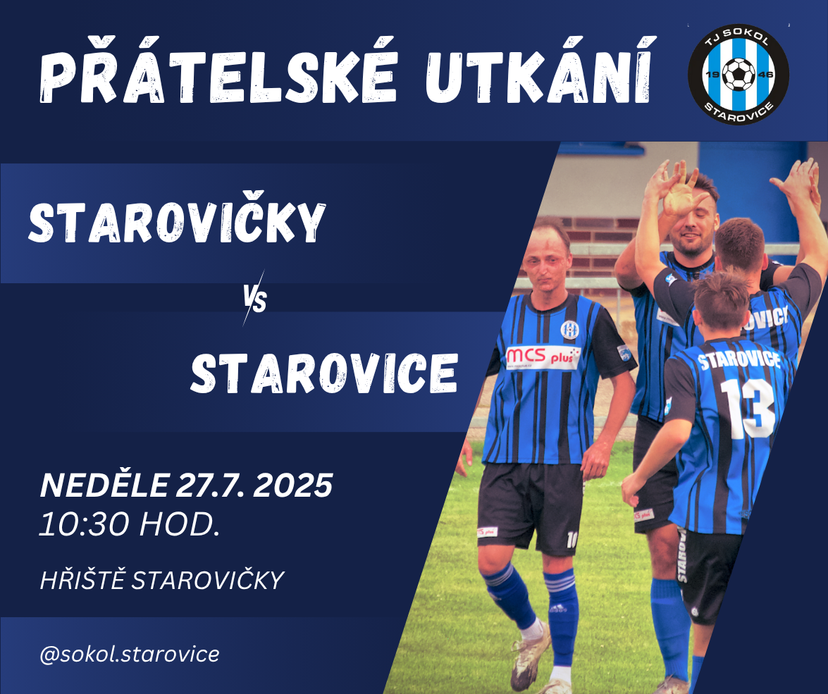TJ Sokol zve na přátelské fotbalové utkání mužů už tuhle neděli dopoledne. Soupeřem nám bude druhý tým 8. ligy loňské sezony - Starovičky. Zápas se odehraje ve Starovičkách.